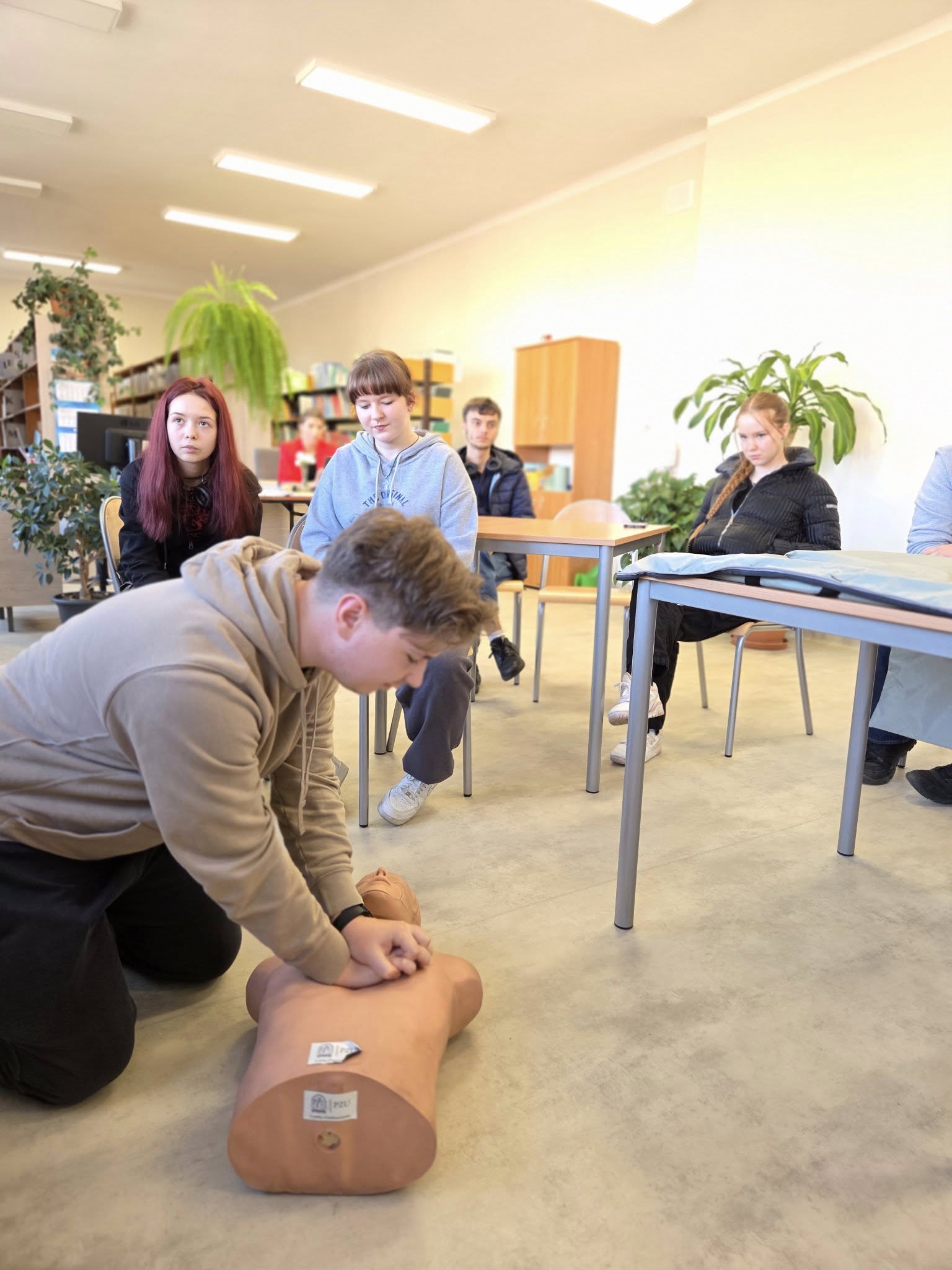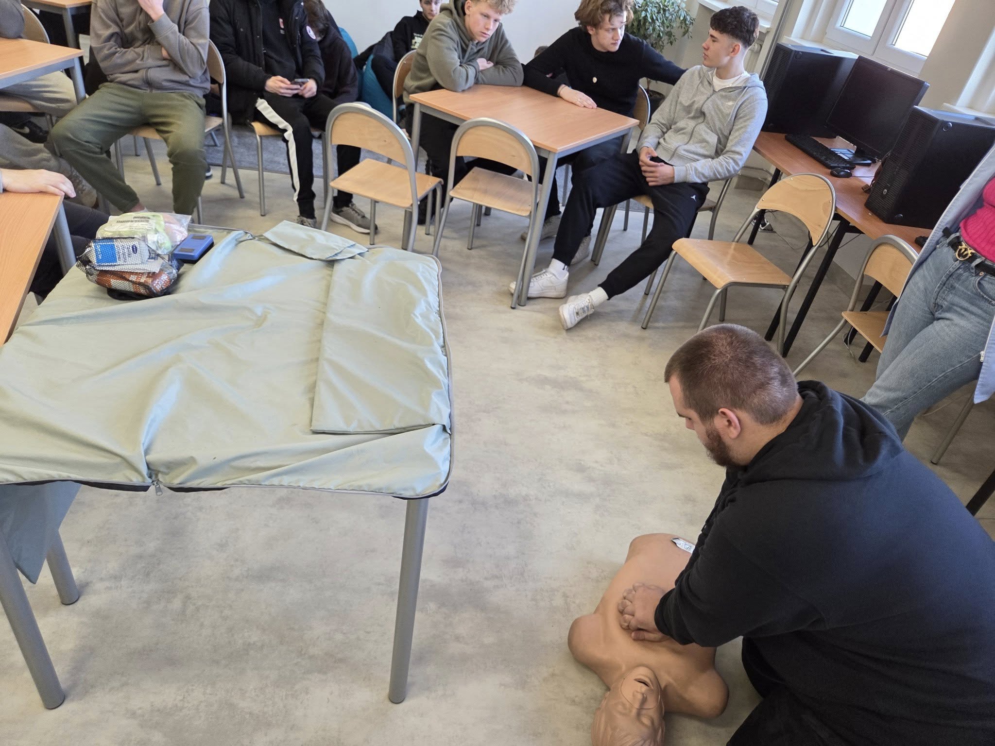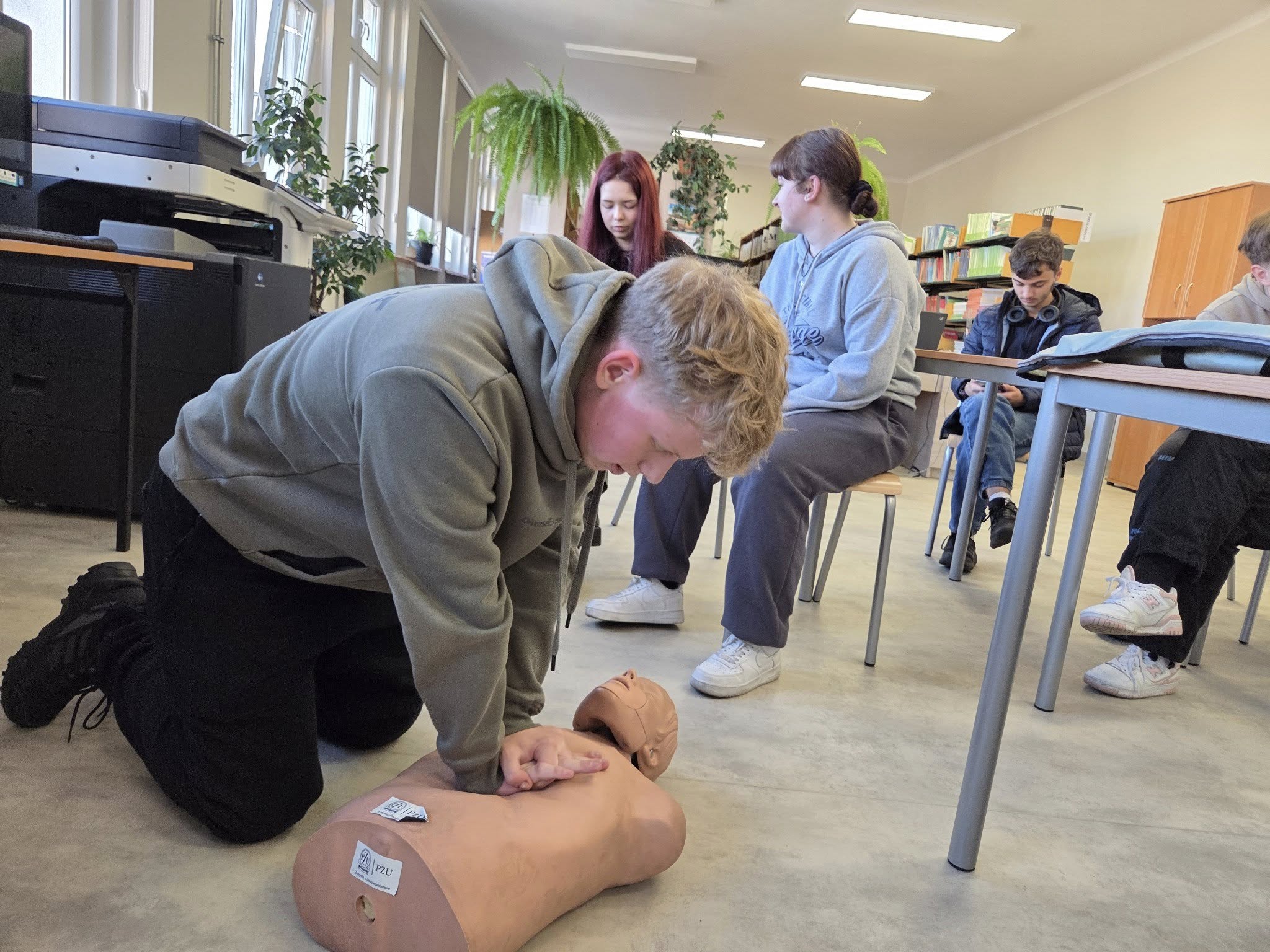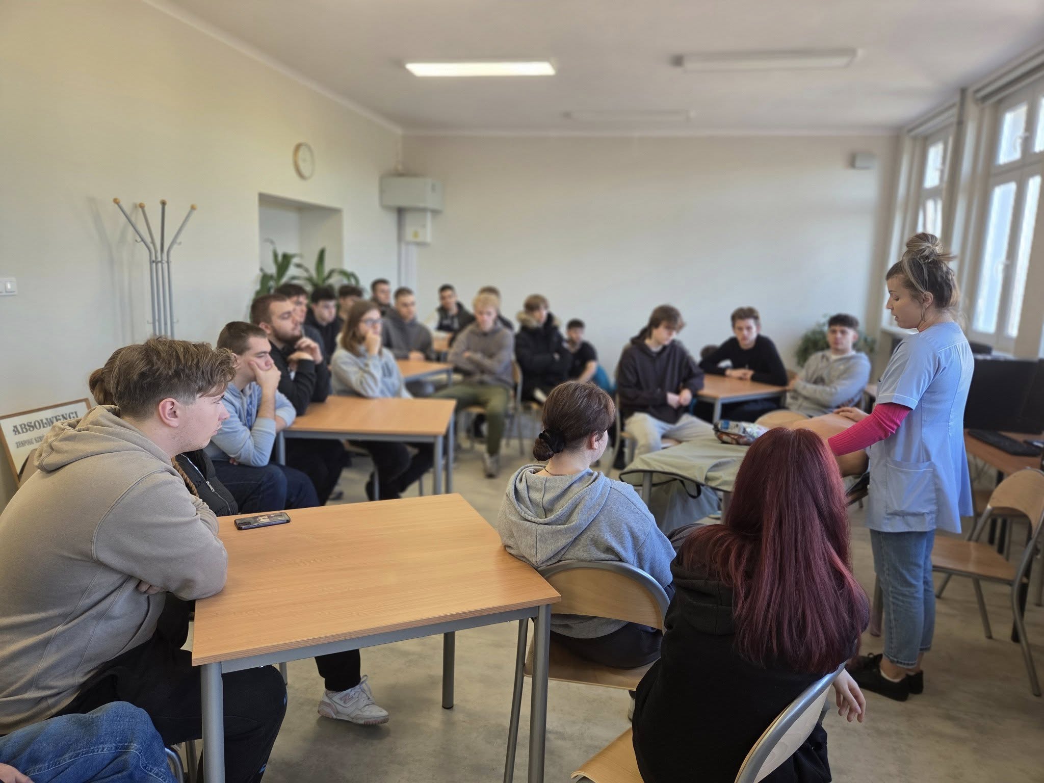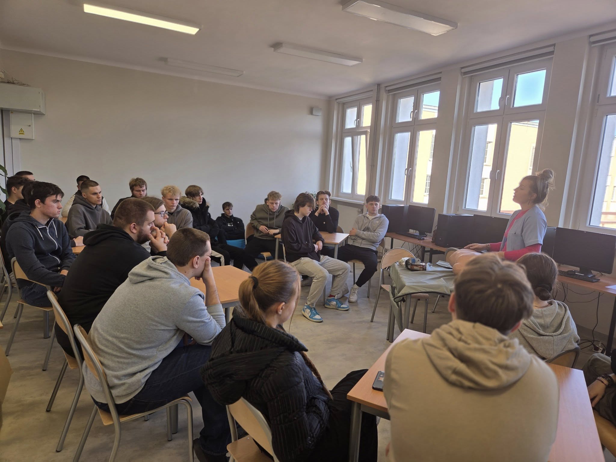 Nasza szkolna Pani pielęgniarka przeprowadziła w klasie 4 TI lekcję udzielania pierwszej pomocy.