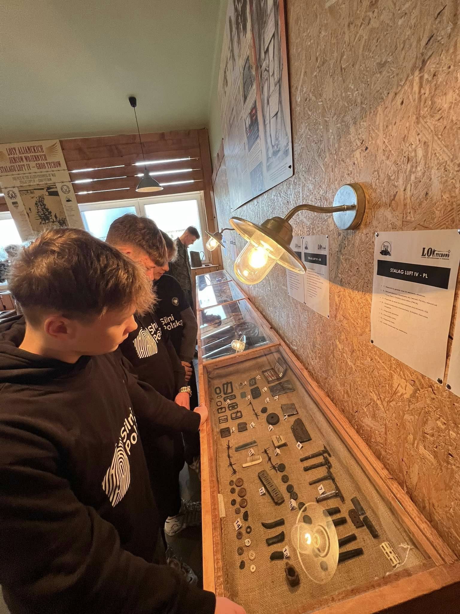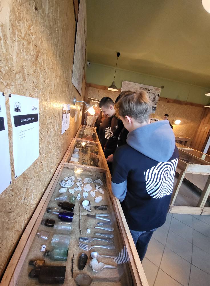 Młodzież odwiedziła Izbę Pamięci w Liceum Ogólnokształcącym w Tychowie, gdzie zgromadzone są eksponaty związane z obozem. Uczniowie zobaczyli mural umieszczony na ścianie Szkoły Podstawowej w Tychowie przedstawiający sierżanta pilota Jana Mikszo, który po zestrzeleniu trafił do obozu w Modrolesie. Uczniowie mieli okazję zobaczyć pozostałości poobozowe oraz wysłuchać prelekcji Pana Pawła Urbaniaka na temat historii obozu i losów jeńców.